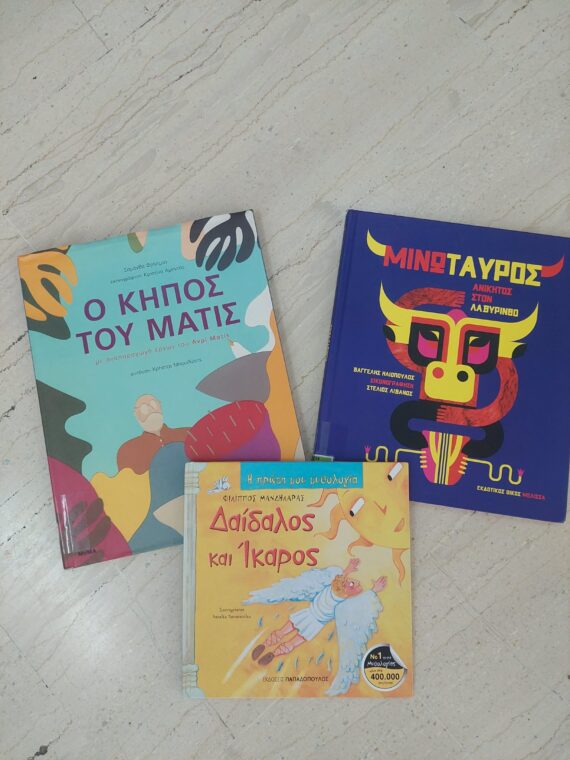 Με το βιβλίο του Φίλιππου Μανδηλαρά «Δαίδαλος και ‘Ικαρος» και τον πίνακα του Henri Matisse «Η πτώση του ‘Ικαρου», τα παιδιά ταξίδεψαν με τη φαντασία τους και ανακάλυψαν πώς ένα έργο τέχνης μπορεί να κρύβει μια ολόκληρη ιστορία. Εκφράσανε σκέψεις και συναισθήματα και έφτιαξαν τις δικές τους πολύχρωμες “πτήσεις”.