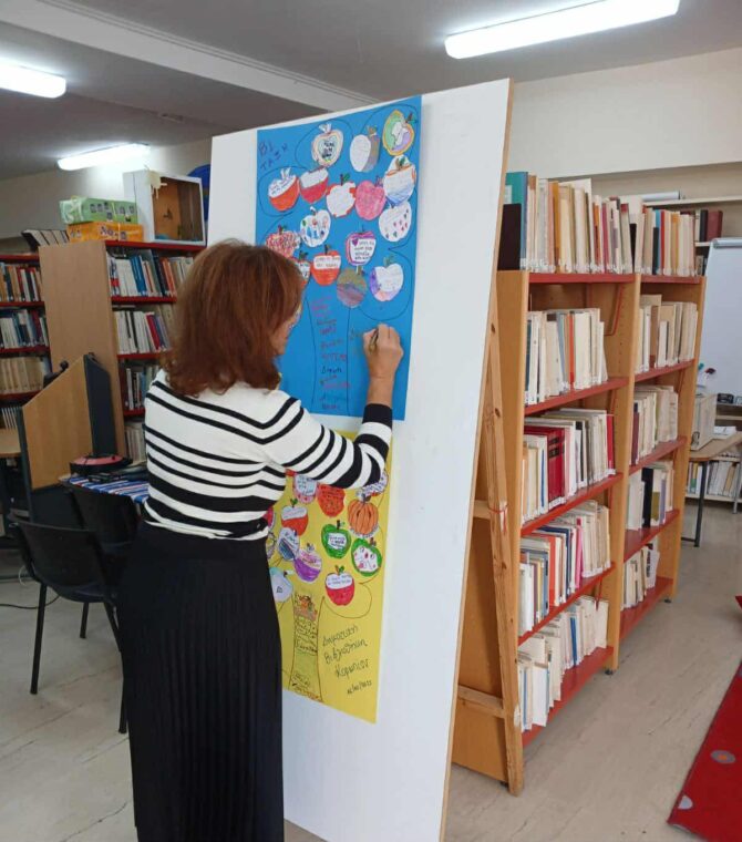 Μετά την ξενάγησή τους στους χώρους της Βιβλιοθήκης και την ενημέρωσή τους για τον ρόλο και τις υπηρεσίες που προσφέρει αυτή, ξεκινήσαμε την δράση.
